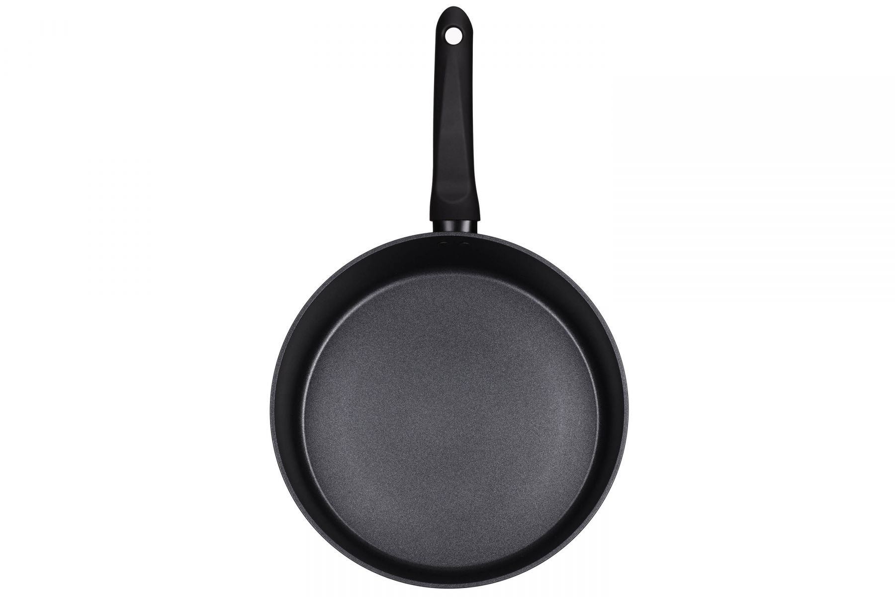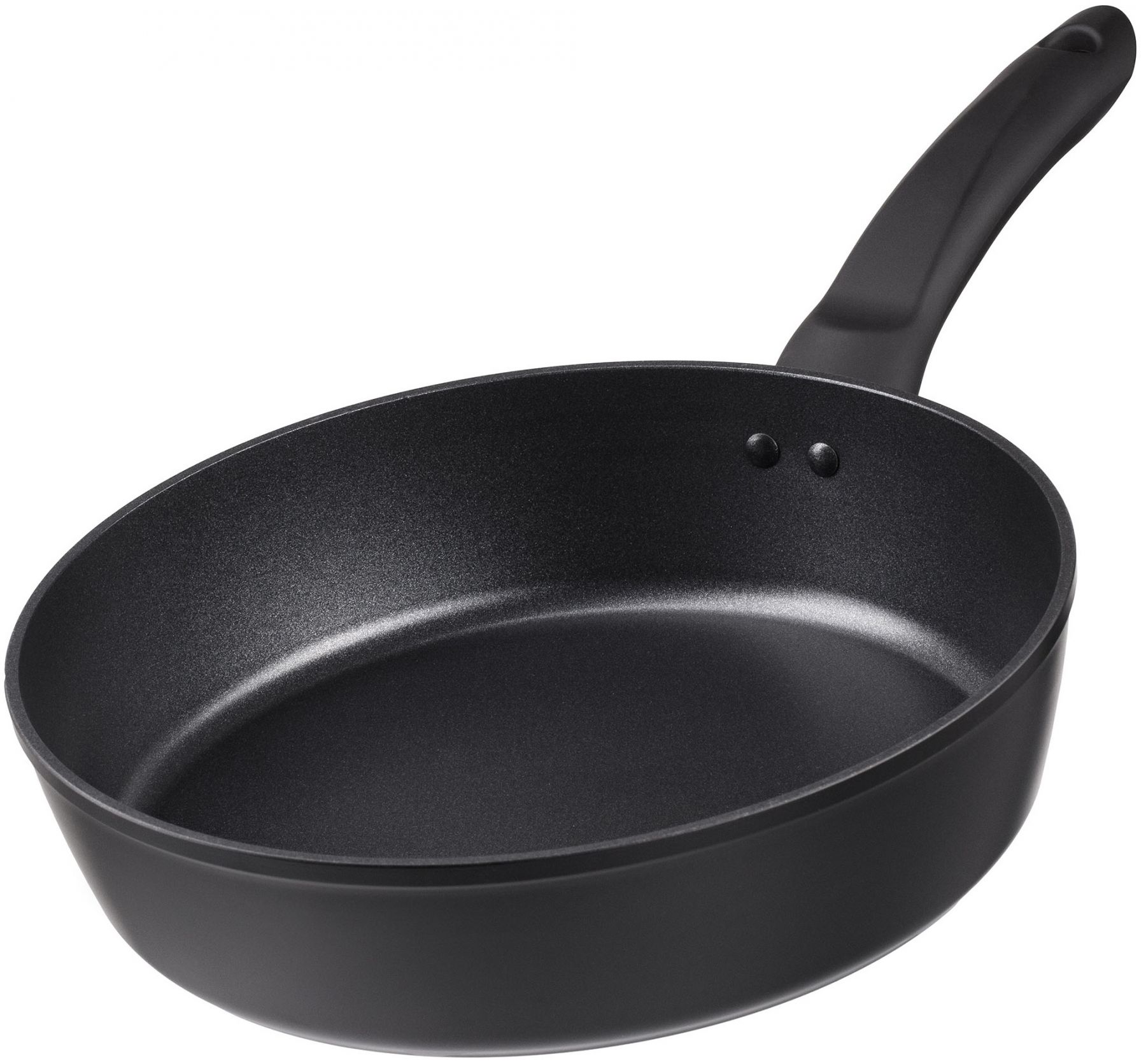 Містка сковорода діаметром 28 см – «мастхев» для кожної кухні. Модель виготовлена з кованого алюмінію, руків’я має soft-touch-покриття. За висоти 7 см товщина стінок складає 2,6 мм, а дна – 4 мм. Виріб не рекомендовано мити в посудомийній машині. Зсередини поверхня має протипригарне покриття, а щоби сковорідка слугувала довше, під час приготування необхідно використовувати силіконові чи інші неметалеві аксесуари.
