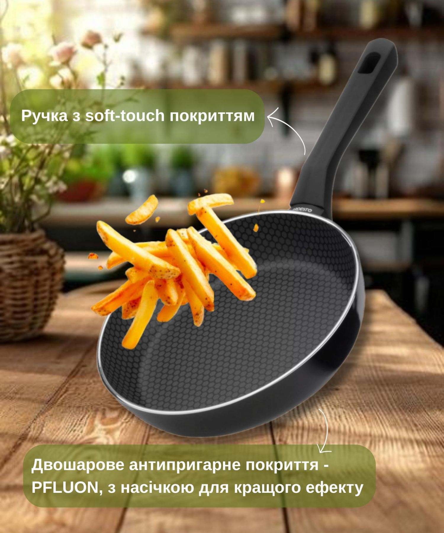 Особливості сковороди:Ручки з системою soft touch, рекомендовано мити вручну