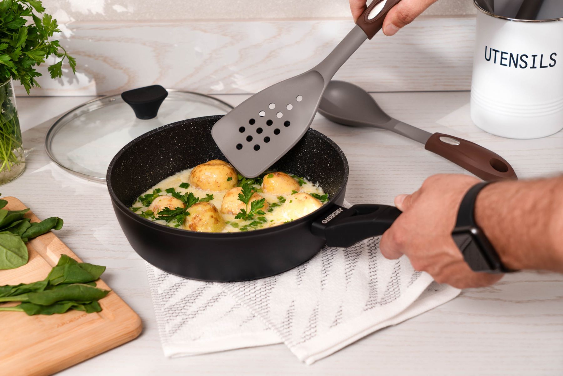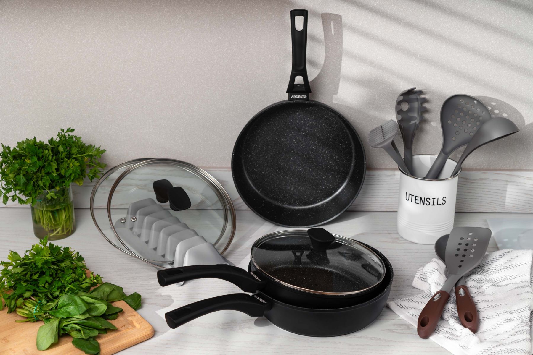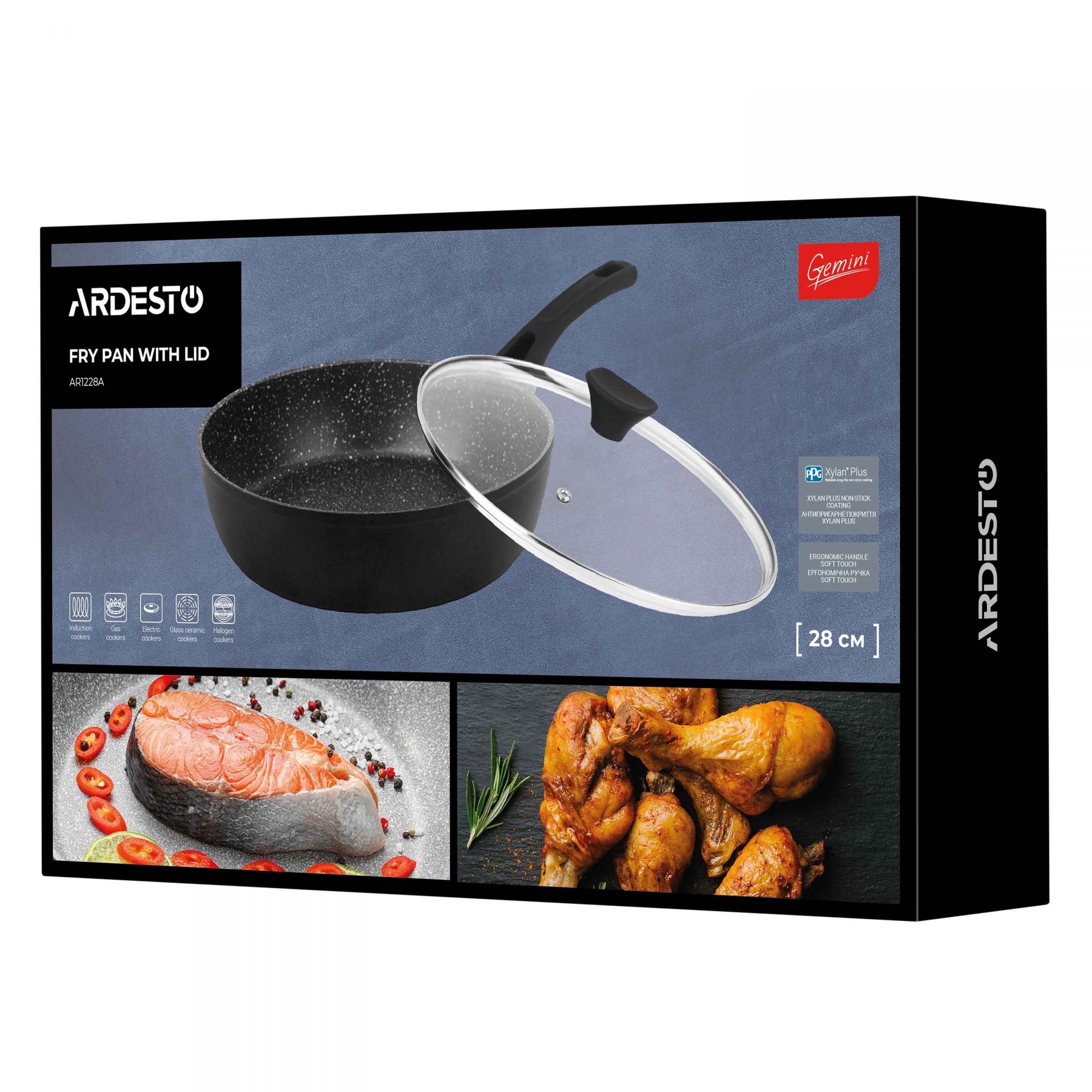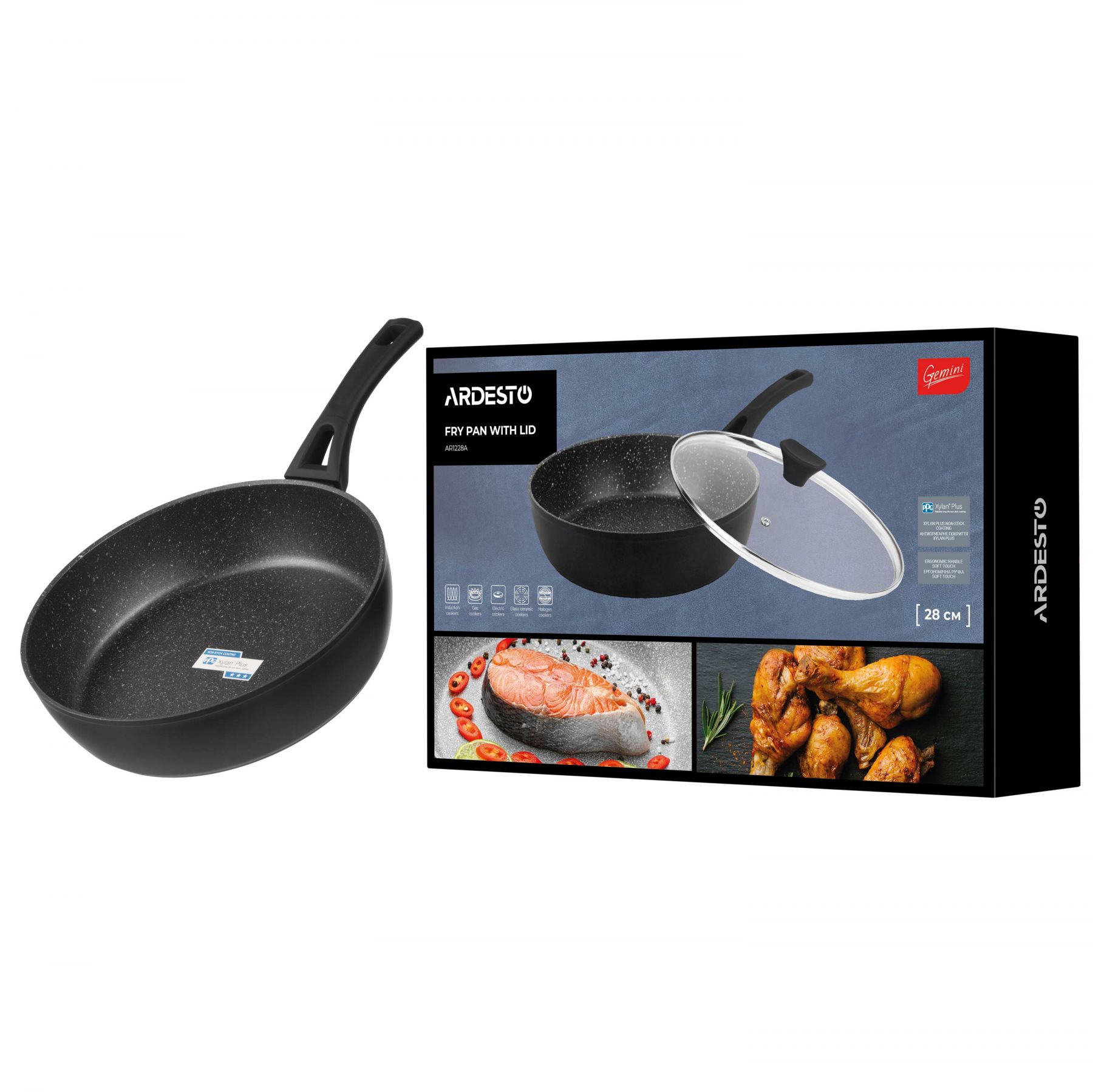 Сковорода глибока з кришкою ARDESTO Gemini Livorno, 28см, алюміній, чорний