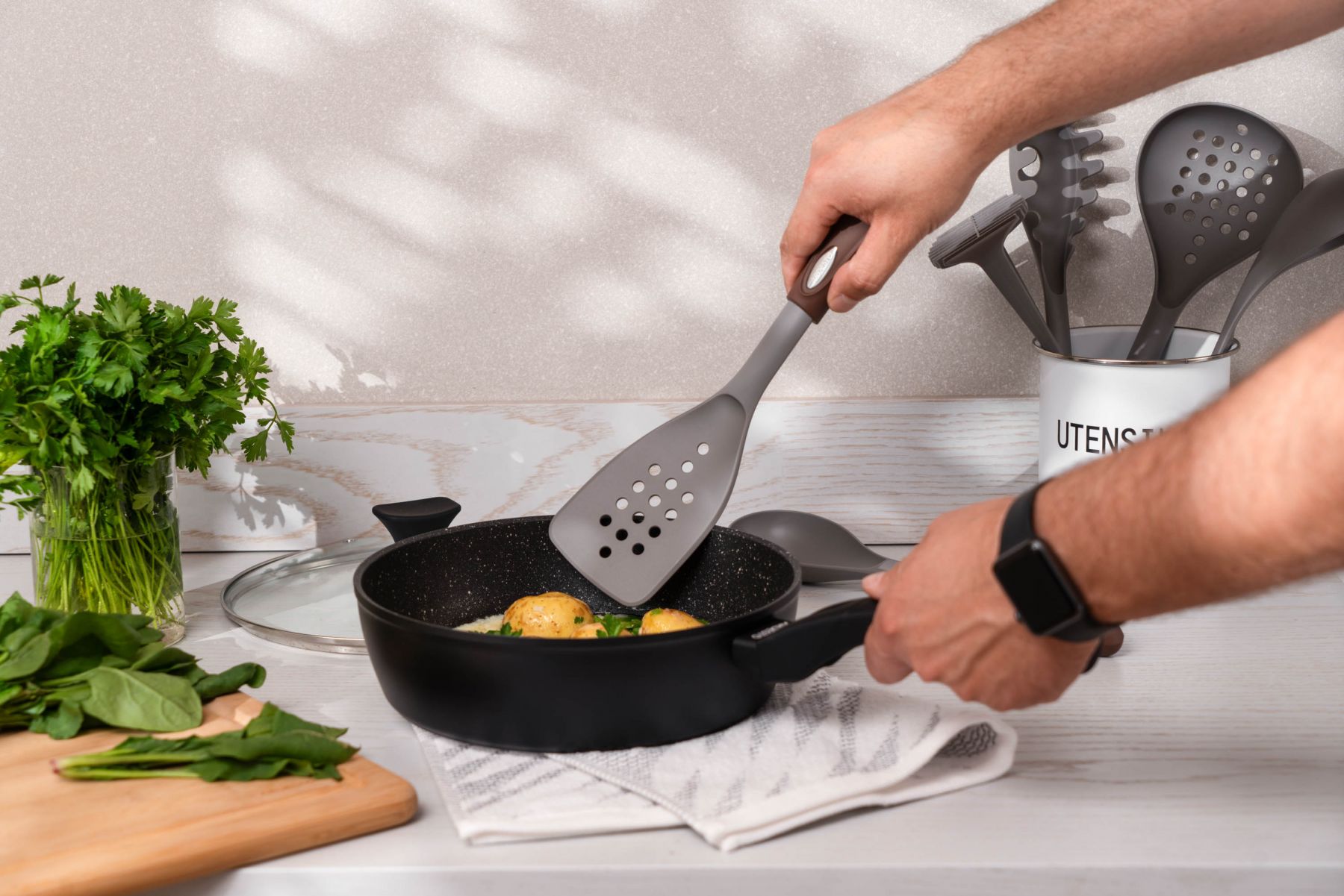 Глибоку сковороду з кришкою ARDESTO Gemini діаметром 28 см виготовлено з кованого алюмінію, який забезпечує швидке та рівномірне нагрівання. Сковороду вкрито двома шарами протипригарного покриття PPG XYLAN PLUS, тож під час приготування можна використовувати менше олії та дотримуватися здорового харчування.