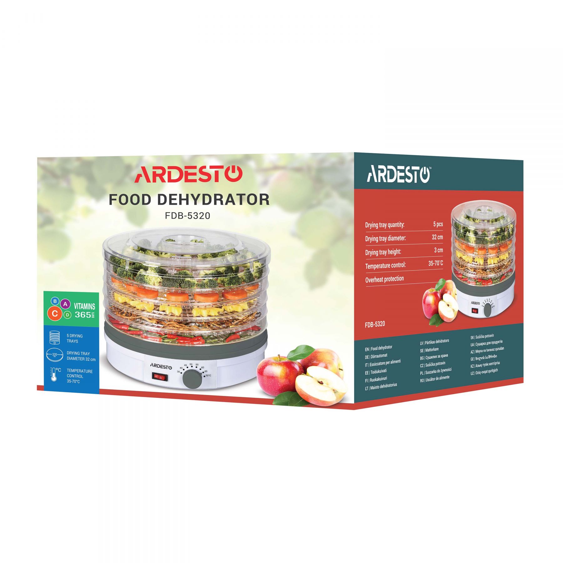 Сушарка для продуктів ARDESTO FDB-5320, 245Вт, піддонів -5x3см, діаметр-32см, макс-70°С, рег.темп, пластик , білий