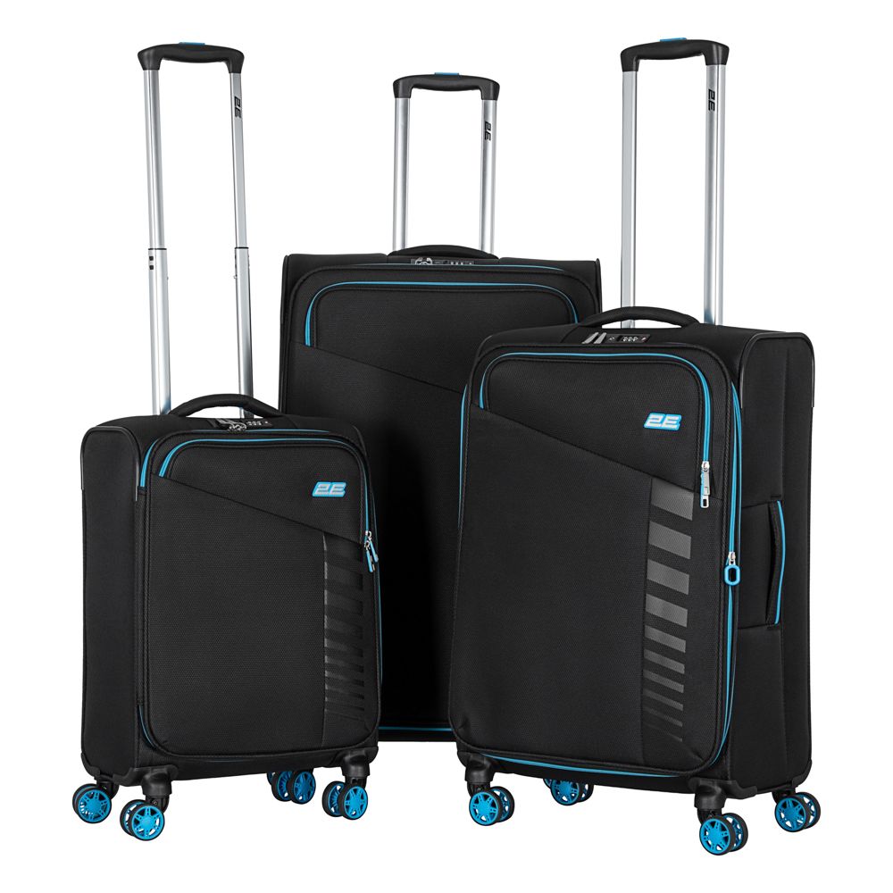 Валіза 2E, Trek, поліестер, мала, 35л, TSA, 4 колеса, чорний