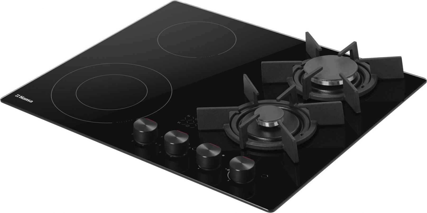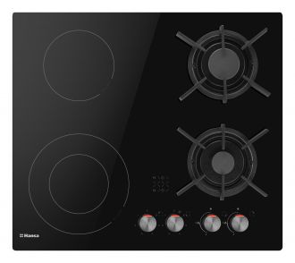 Варильна поверхня Hansa комбінована (2 газ + 2 електро), 59,2см, розширена зона, чавун, чорний
