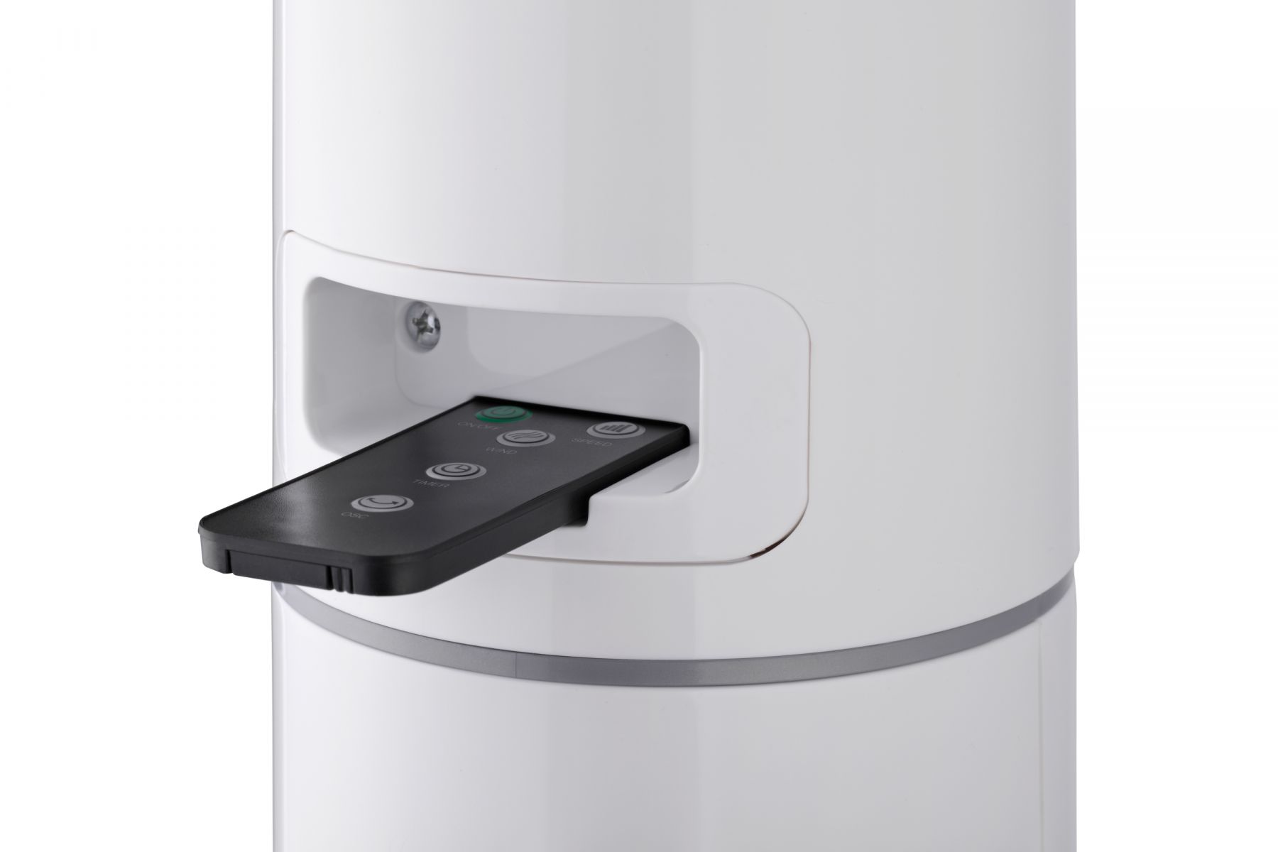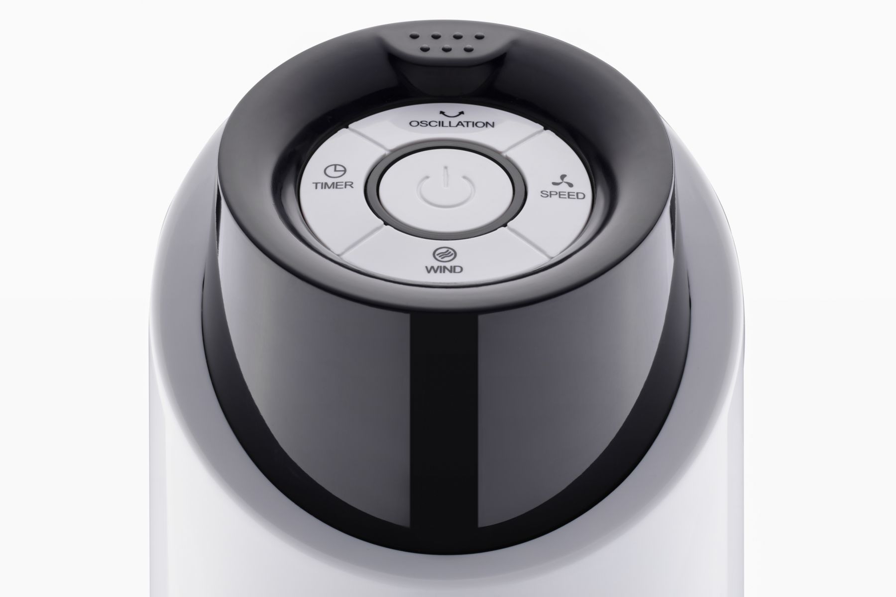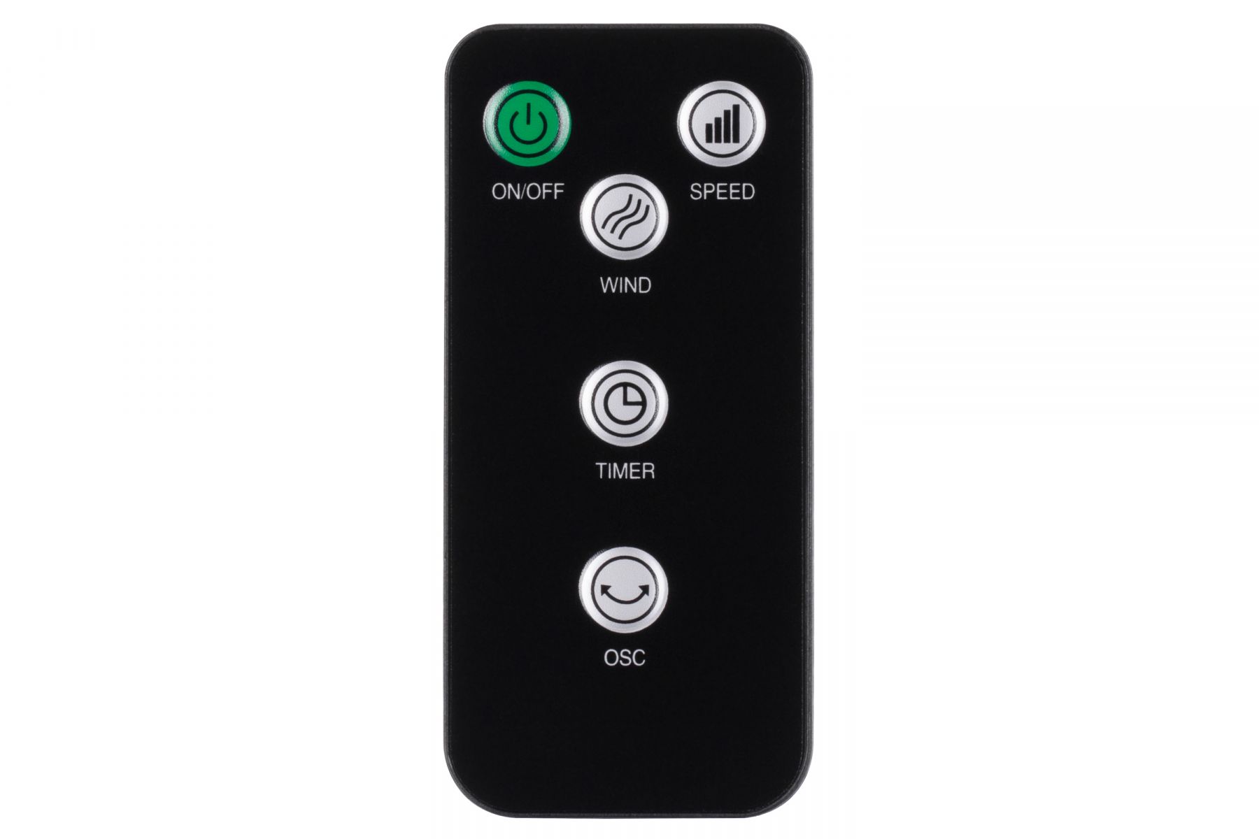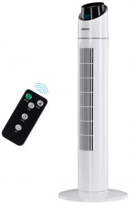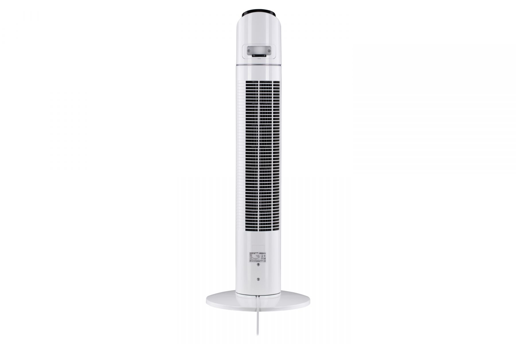 Підлоговий вентилятор колонного типу з потужністю 50 Вт, пультом дистанційного управління, таймером, датчиком температури та LED-дисплеєм. Вентилятор підтримує налаштування швидкості та обертання, а також три режими: морський бриз, свіжість лісу та класичне обдування.