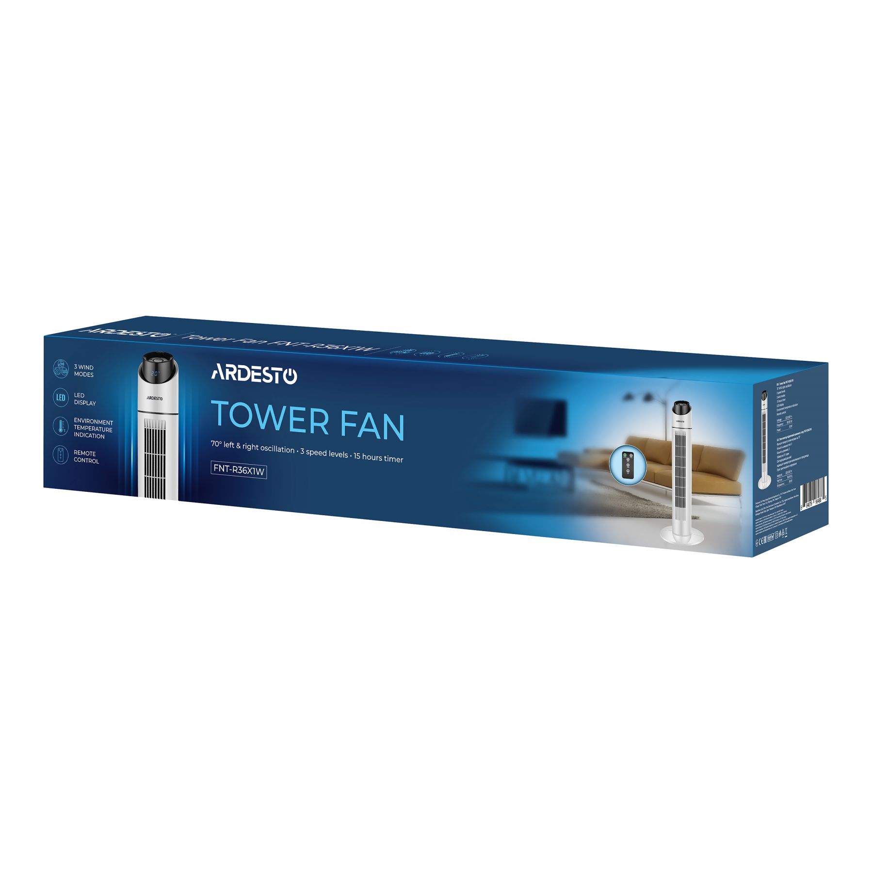 Вентилятор ARDESTO FNT-R36X1W колонний, 90см, 50Вт, пульт ДК, дисплей, чорно-білий