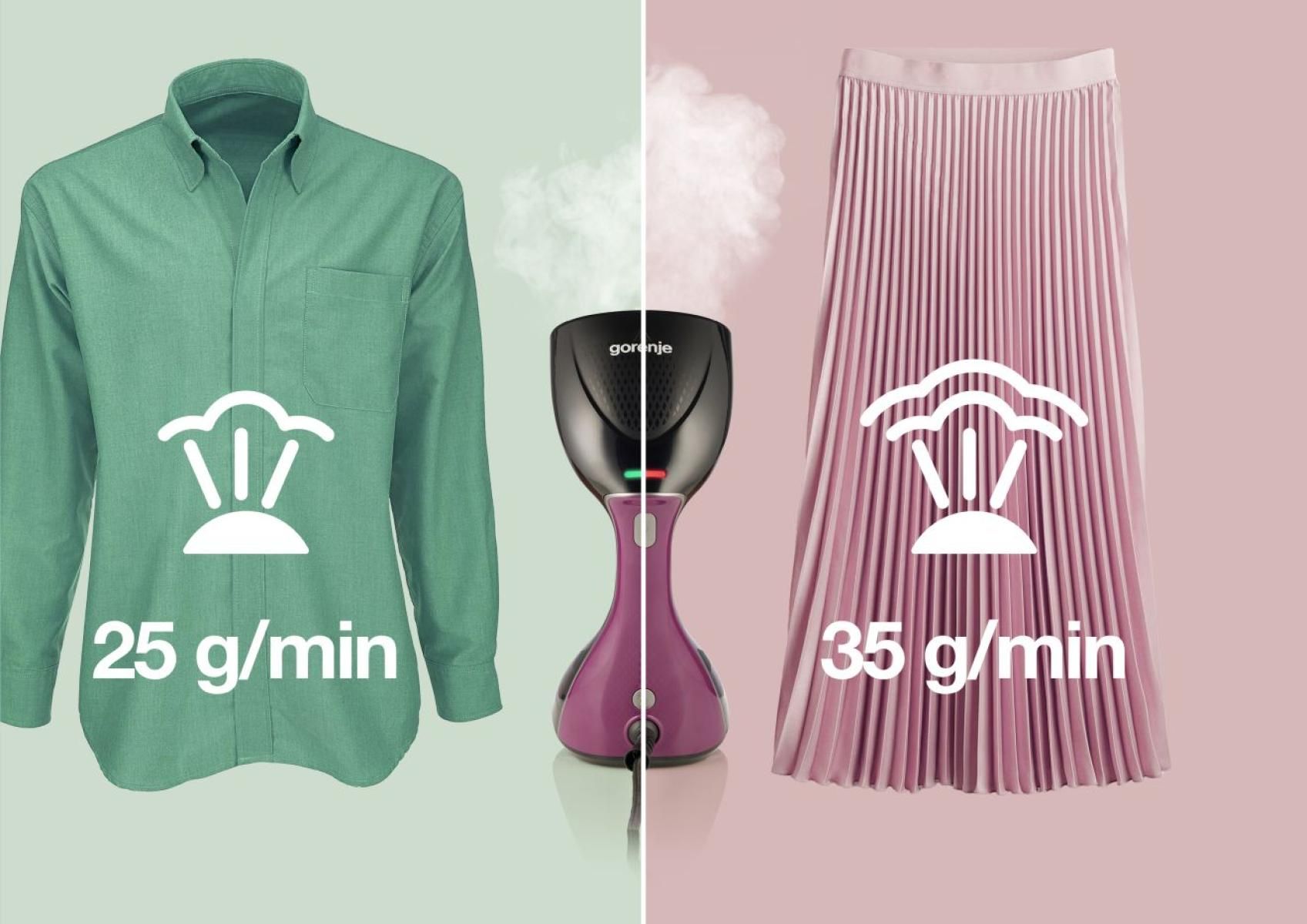 Ручний відпарювач Gorenje GS2100BKV швидко освіжає та знезаражує одяг потужною парою, усуваючи запахи й бактерії. 2 режими пари та вертикальне відпарювання забезпечують швидке розгладжування без прасувальної дошки, а керамічне покриття гарантує плавне ковзання без прилипань. Знімний резервуар 220 мл, щітка для тканин і мірний стакан у комплекті та ергономічний дизайн роблять догляд за речами простим щодня й у подорожі.