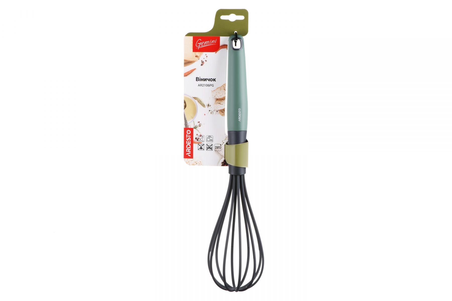 Основна частина віничка зроблена з нейлону, а покриття ручки з прогумованого пластику. Приладдя з нейлону можна використовувати з посудом із антипригарним покриттям.