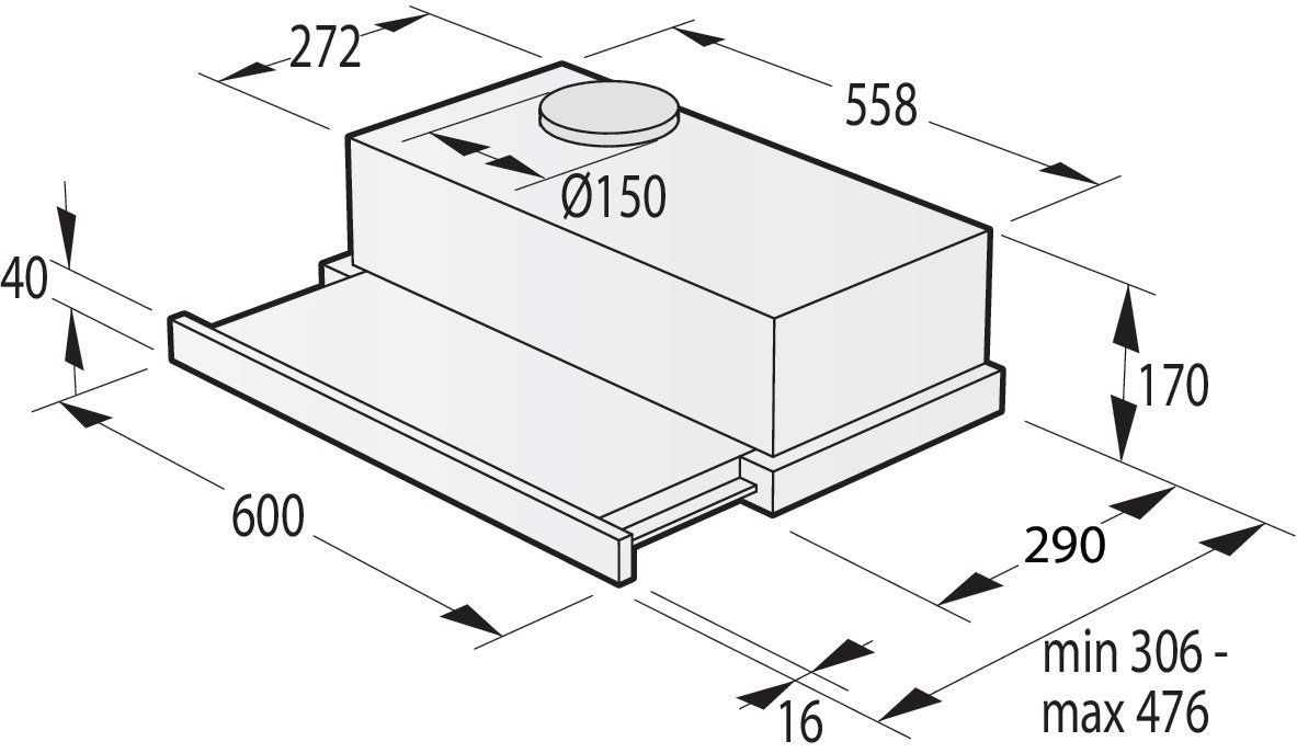 Витяжка Gorenje телескопічна, 60см, 350м.куб/год, чорний