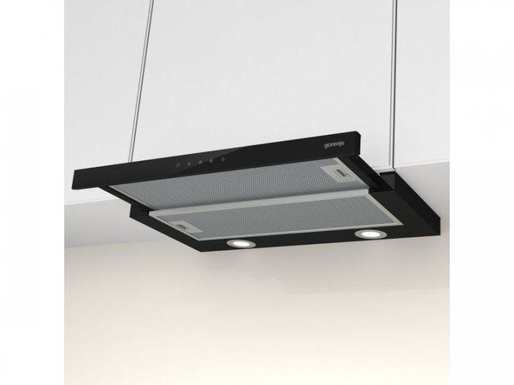 Витяжка Gorenje TH60E3B чудово доповнить будь-який інтер'єр. Модель може працювати як у режимі відведення, так і в рециркуляції.