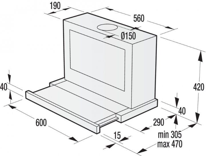 Витяжка Gorenje вбудовувана, 60см, 578м.куб/год, нерж