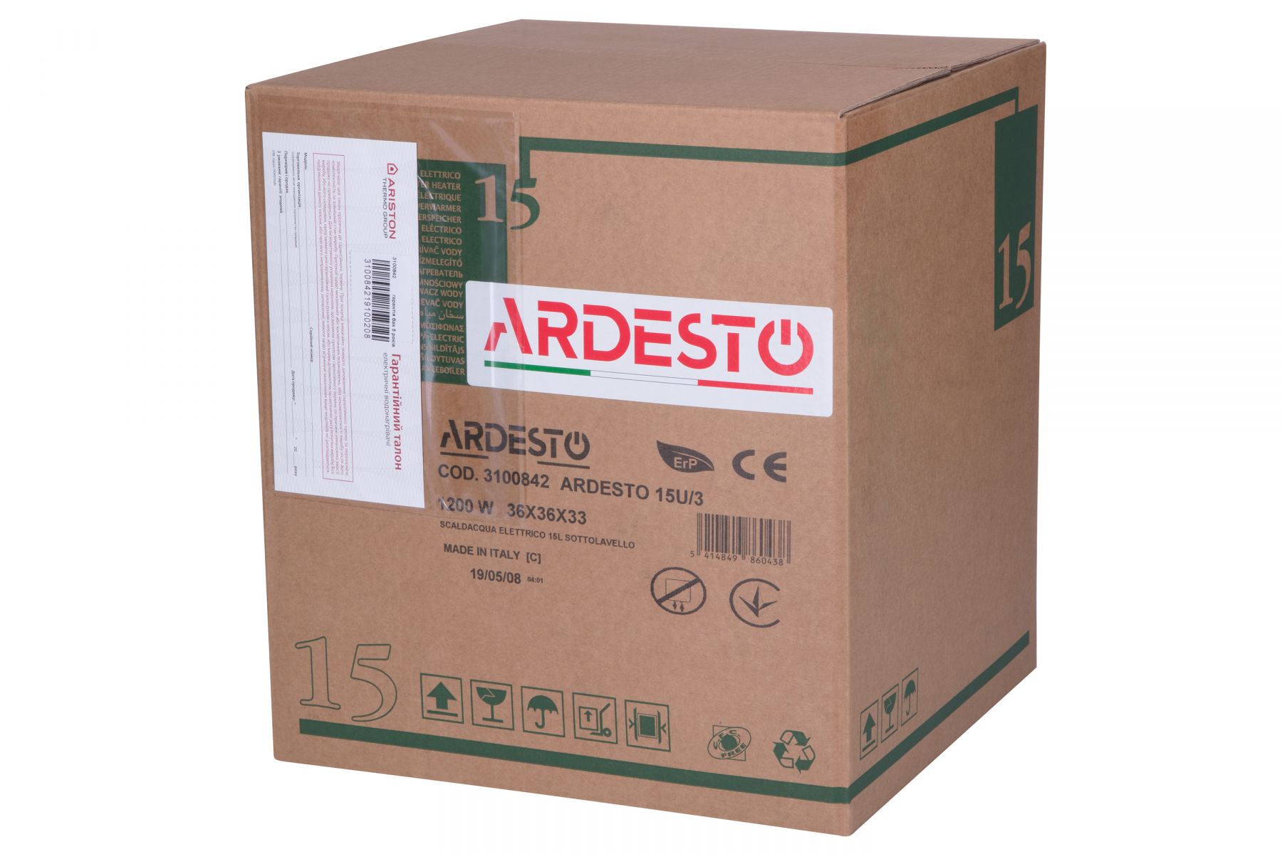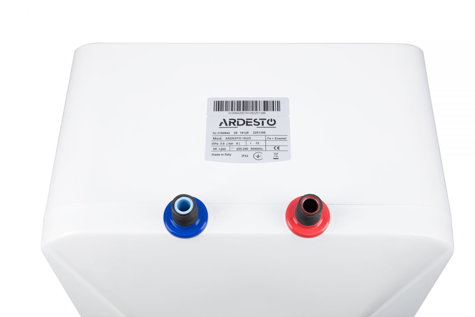 Водонагрівач електр. ARDESTO компакт, 15л, 1,2кВт, монтаж над мийкою, мех. кер-ння, A, Італія, біло-сірий