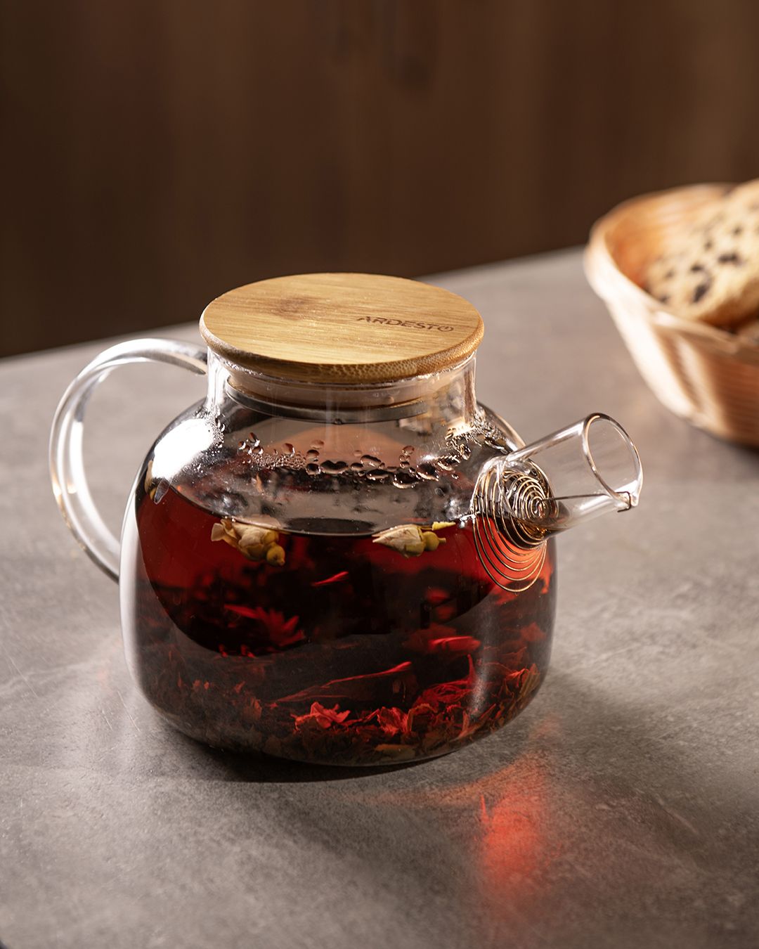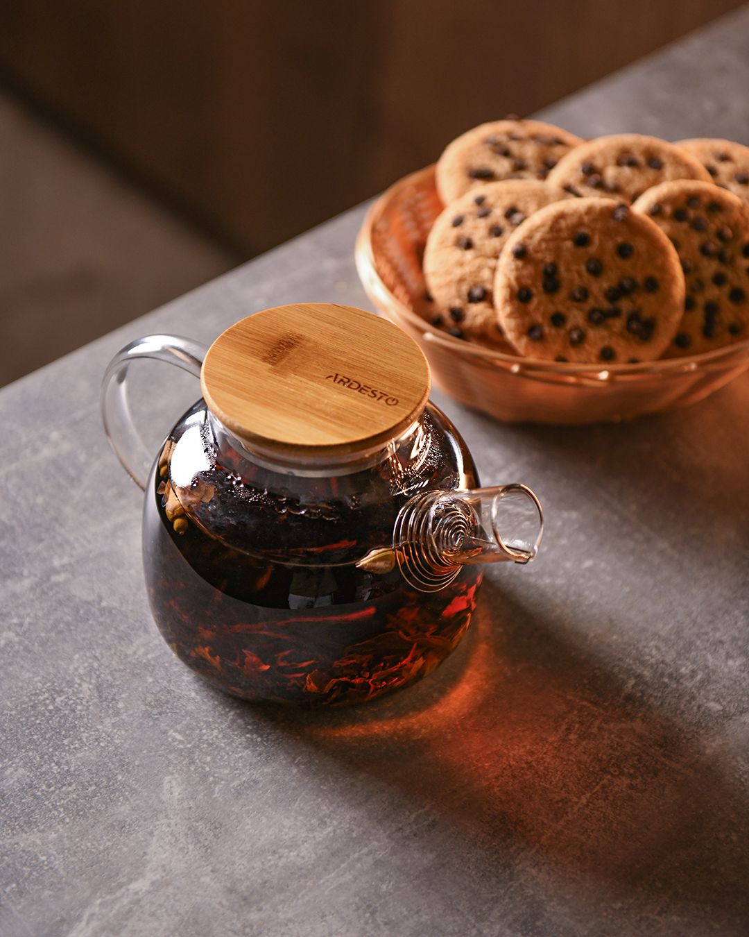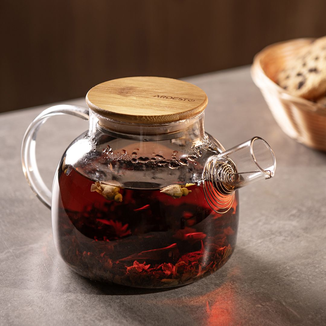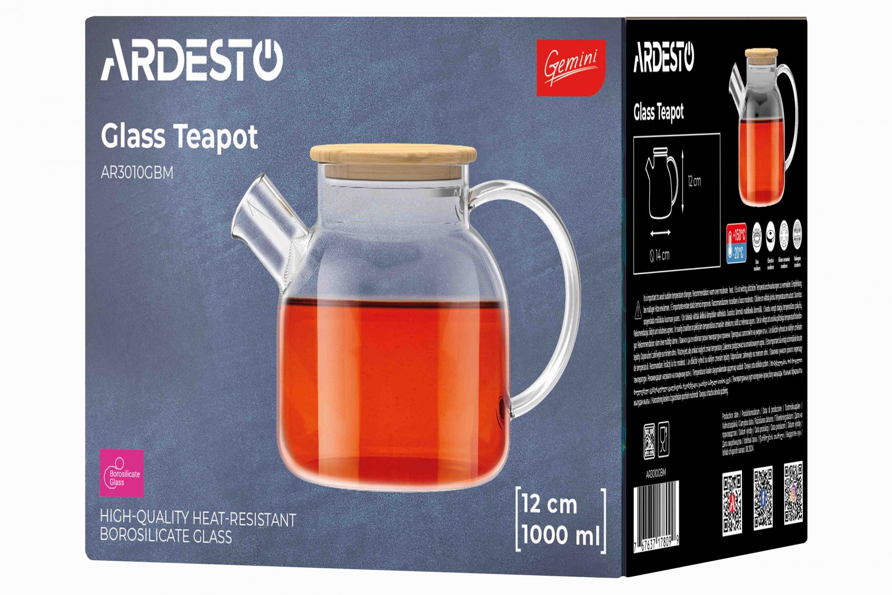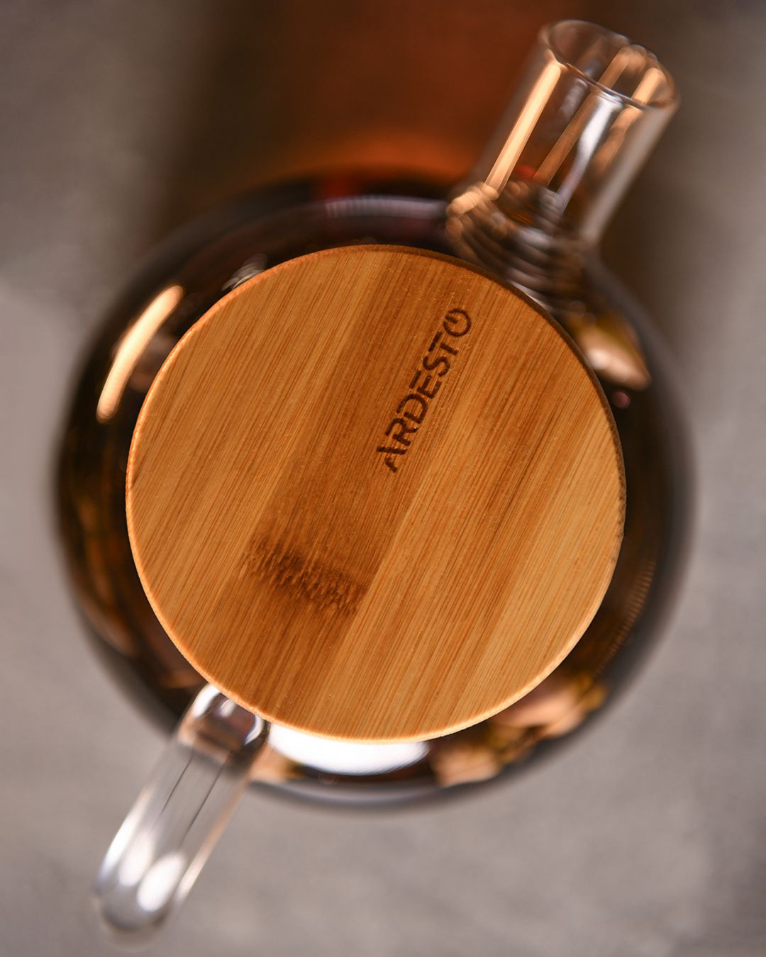 Заварник Ardesto Gemini 1000мл, боросилікатне скло, бамбук, прозорий