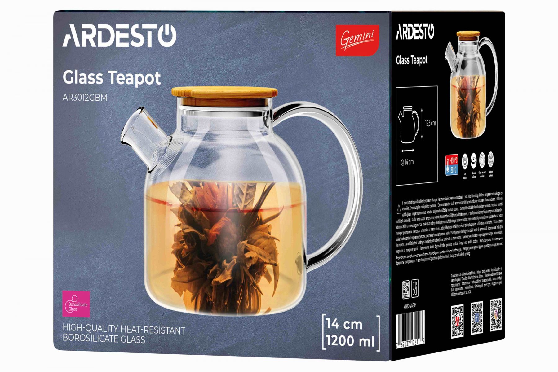 Заварник Ardesto Gemini 1200мл, боросилікатне скло, бамбук, прозорий